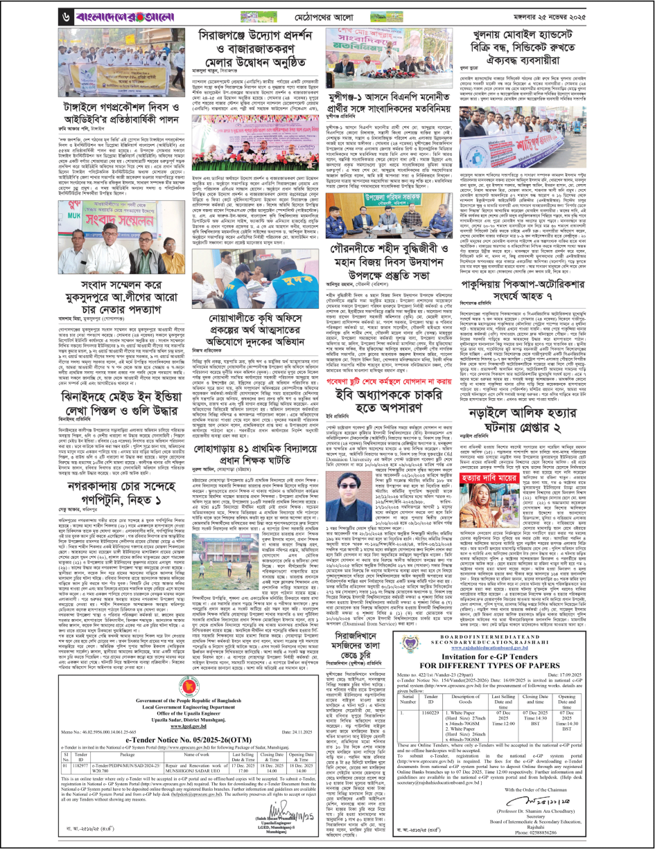 সকল পাতা শুরু ২৩৪৫৬৭৮৯১০ শেষ ডাউনলোড নিউজ পড়তে নিউজের উপর ক্লিক করুন ধন্যবাদ অনুগ্রহ করে অপেক্ষা করুন... প্রকাশক ও সম্পাদক: মফিজুর রহমান প্রকাশক কর্তৃক প্রকাশিত ও সর্বস্বত্ত্ব সংরক্ষিত সম্পাদকীয় কার্যালয়: এইচ এম সিদ্দিক ম্যানশন (৯ম তলা), ৫৫/এ, পুরানা পল্টন, ঢাকা-১১০০। মোবাইল: ০১৮১৭১০৫৪৫৩, ই-মেইল: bangladesheralo2018@gmail.com